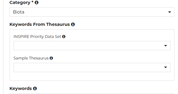 Una vez que haya terminado la configuración, debería encontrar un nuevo widget de entrada en el editor de metadatos que le permitirá elegir palabras clave del tesauro para su recurso.