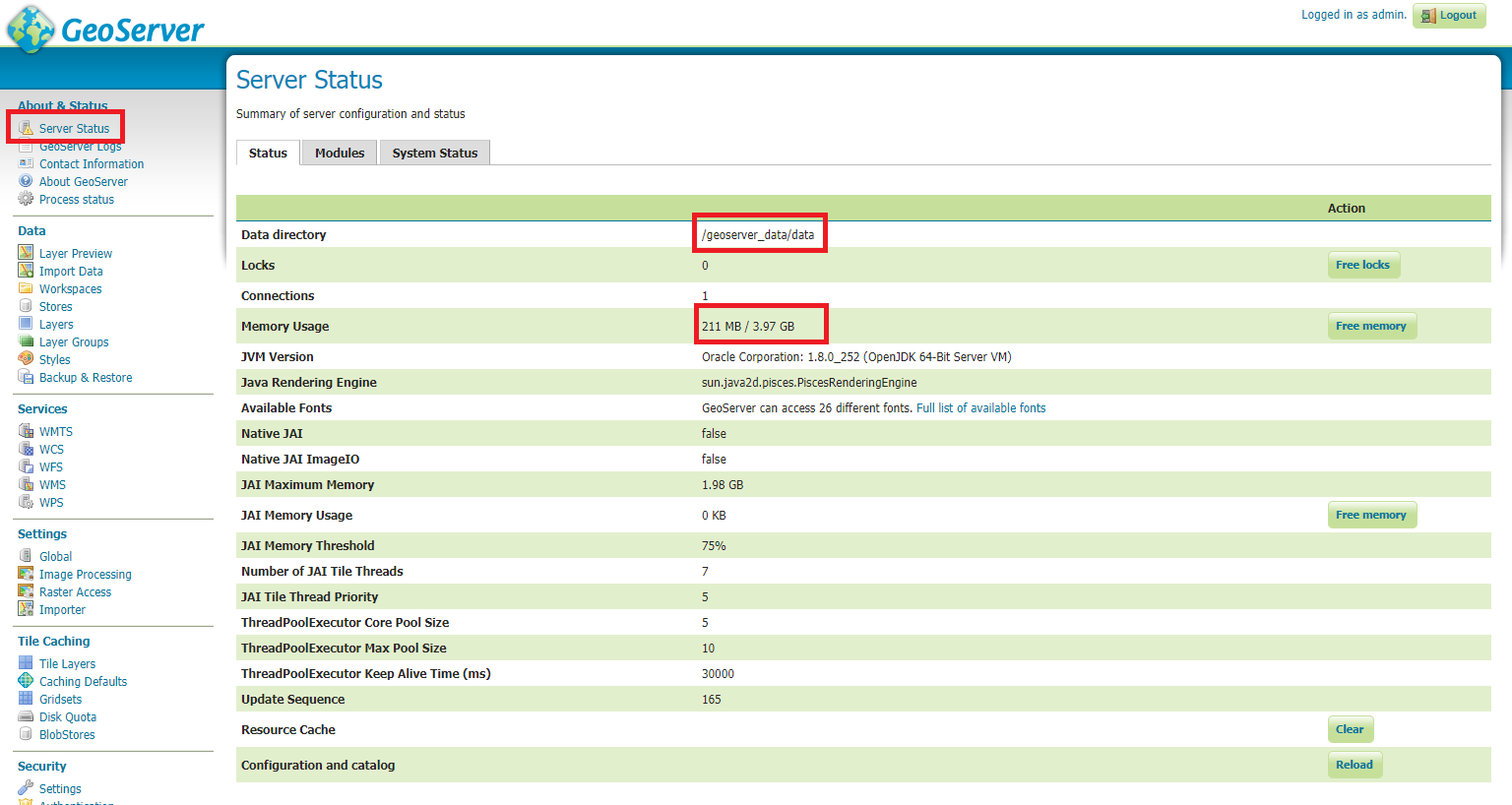Verifique el uso y el estado de la memoria del GeoServer;asegúrese de que la ruta