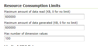 WMS: Actualiza los límites según tus necesidades.No utilice valores muy altos, esto hará que GeoServer sea propenso a ataques DoS.