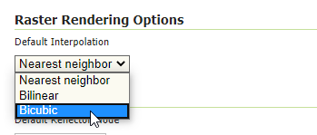 WMS: Raster Rendering Options le permite ajustar la salida WMS para un mejor rendimiento o calidad.Mejor interpretación: