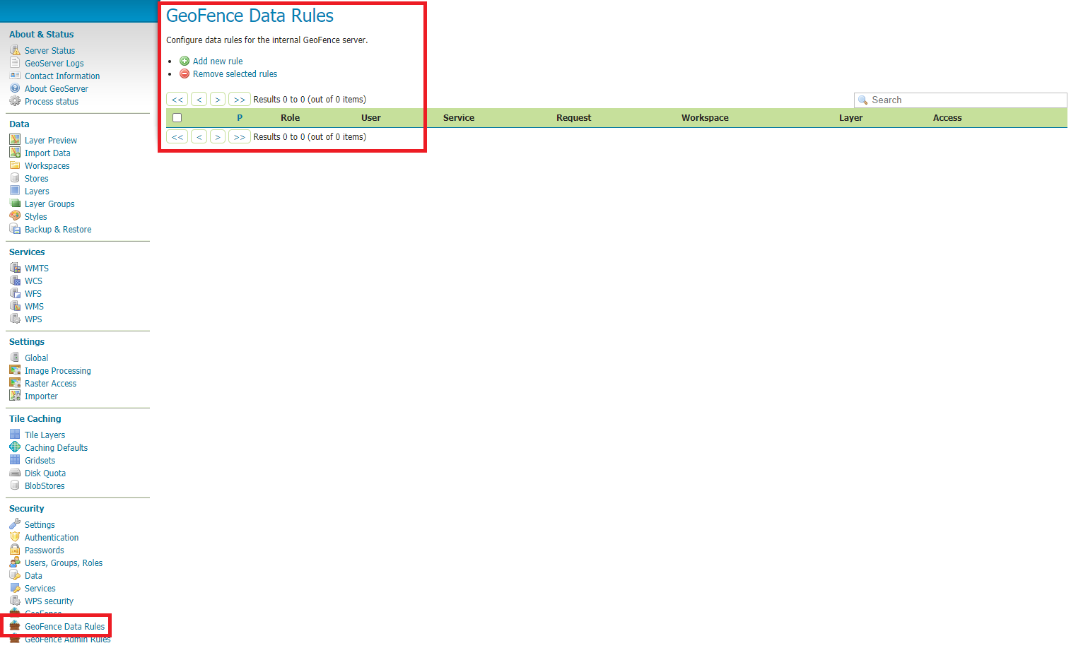 Por defecto, GeoFence almacena las reglas de seguridad en una base de datos H2.