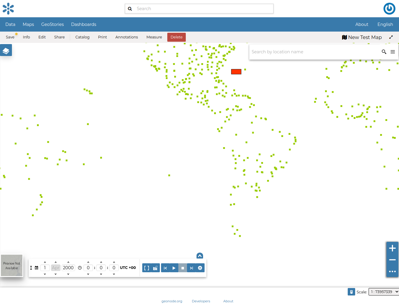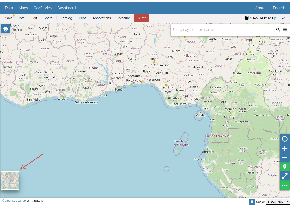 De forma predeterminada, GeoNode permite enriquecer mapas con muchos fondos mundiales.Puede abrir fondos disponibles haciendo clic en el mosaico del mapa a continuación: