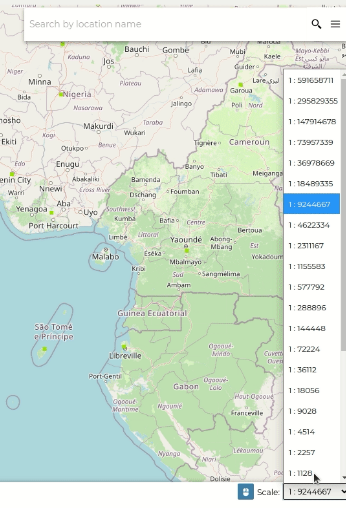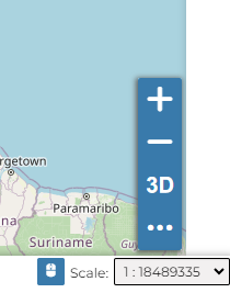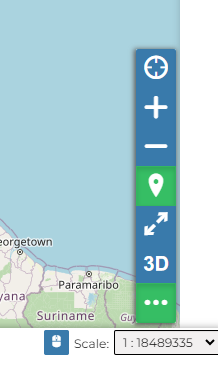las Herramientas de pie de página para administrar la escala del mapa, rastrear las coordenadas del mouse y cambiar el CRS (Sistema de referencia de coordenadas).