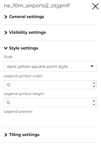 La pestaña Estilo le permite seleccionar el estilo entre los estilos de capa disponibles y cambiar el Ancho y el Alto de la Leyenda.
